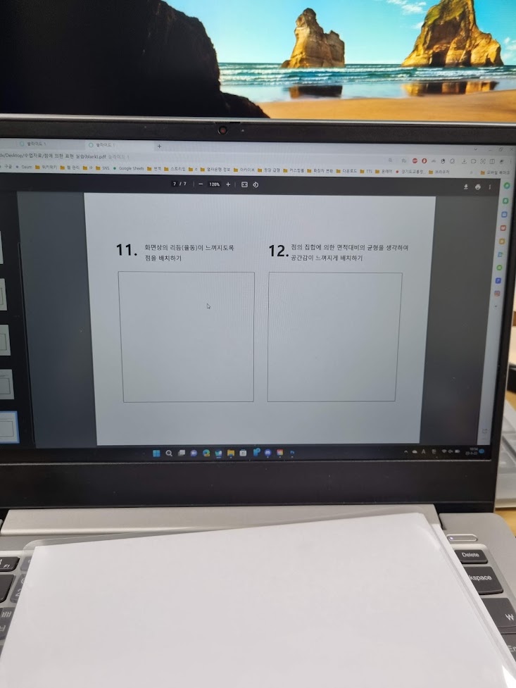 2주차 과제는 디자인 구성요소와 구성 원리 각각의 의미를 적고, 그림 2장씩 첨부하는 과제였어요. 만드는데 표지까지 45장이나 나와서 부득이하게 pdf로 첨부했습니다. 쫌 대충했읍니다,, 웬만하면 보지 마셔요(?)