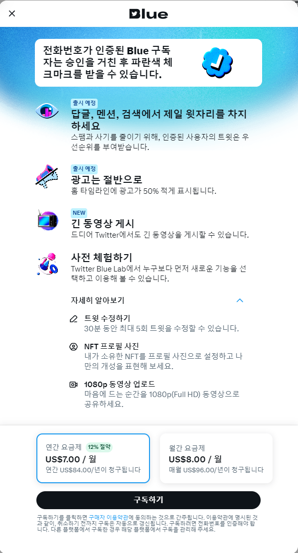 한 때 트위터 유료화라는 논란과 등장한 트위터 블루. 사실 Discord의 Nitro와 비슷하게 결제를 하면 추가 기능과 배지가 생기는 구독 요금제입니다. 그럼 트위터 블루를 결제하면 생기는 기능에 대해서 알아볼까요?