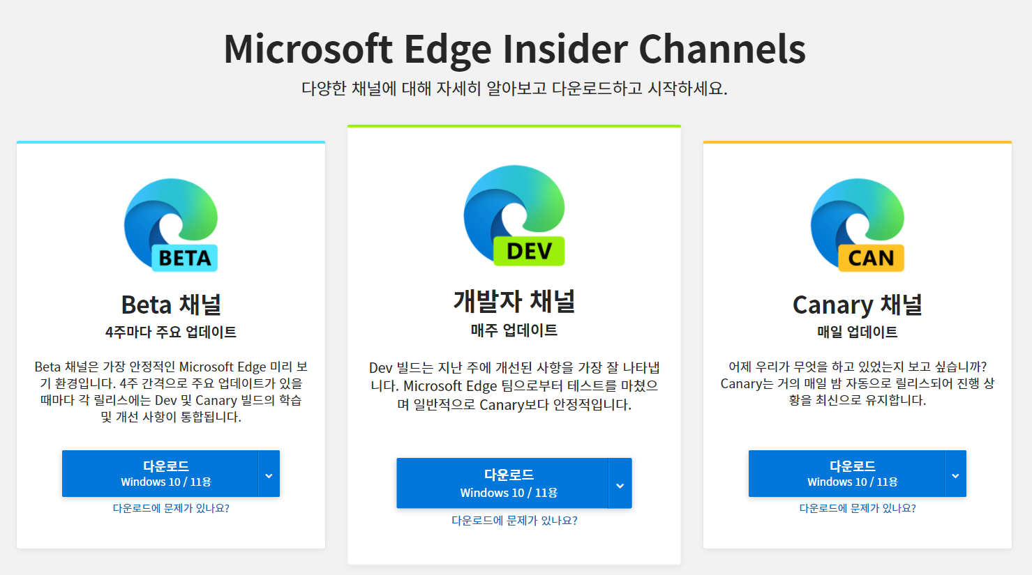 옆 URL를 눌러주세요. https://www.microsoftedgeinsider.com/ko-kr/download/
